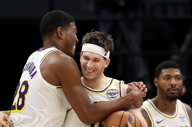 里夫斯在这一战充分展现了自己的进攻能量,他率领湖人和阵容完整的国王死磕。尤其在末节,他连续进球,帮助湖人重新取得领先。国王采取对里夫斯包夹的战术,他又及时传球给艾顿,让后者进攻得分。
