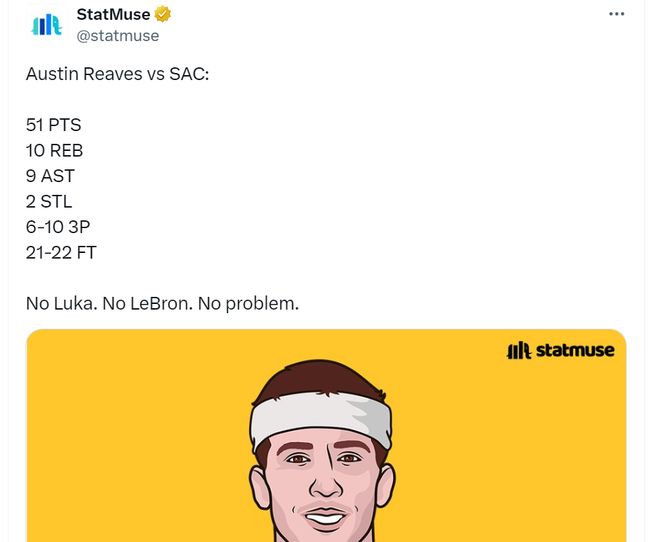 里夫斯这一战也证明了他在今年夏天拒绝湖人给出的4年8920万美元提前续约合同是明智的。名宿帕金斯在推特上写道:“今晚这样的比赛就是里夫斯认为4年9000万(实际为8920万)不够的原因。而且,天呐,他是对的。几乎拿下50分三双,而且拿到一场胜利,湖人最好弄清楚这件事。”
