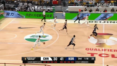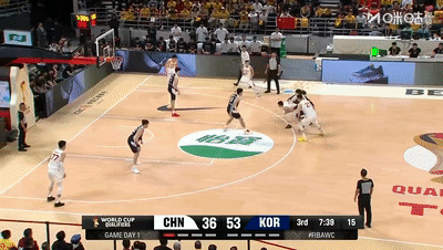 韩国队自知阵地战比拼不过坚决提速打转换,防守端采取联防,韩国队打法明确,出手也相当果断,节中阶段韩国队通过制造犯规+跑轰三分连得10分取得10-3领先,迟迟未能上分,郭士强提前换上胡金秋。