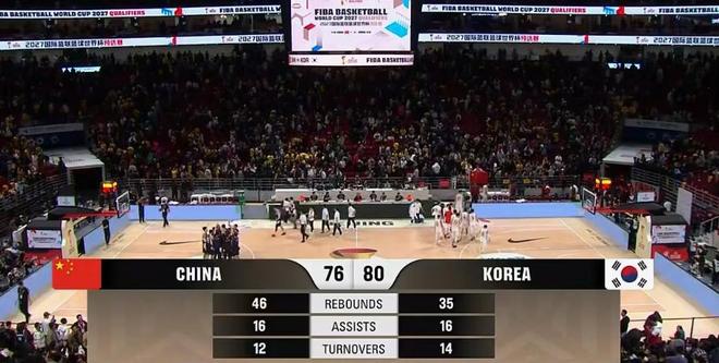 最终,韩国队以80-76击败中国队。