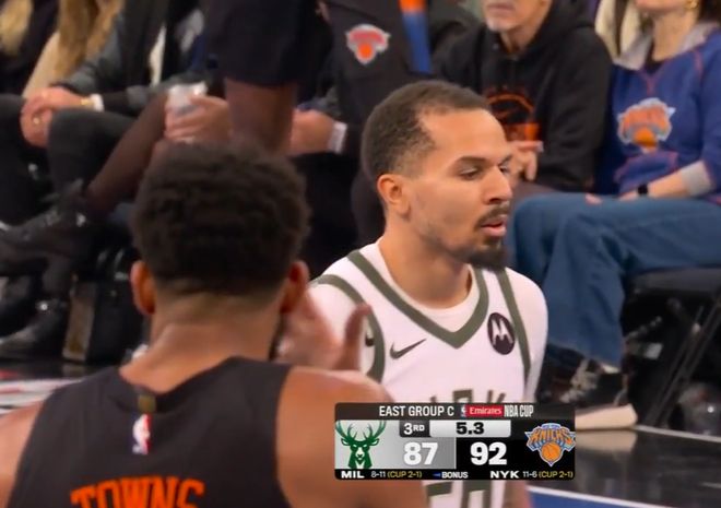 易边再战,字母哥上来就强打内线,造成犯规走上罚球线,哈特反击冲击篮筐同样造犯规还以颜色,A.J. 格林接球三分干拔还能命中,麦克布莱德立马三分回应,两队比分交替上升。布伦森连续三个回合招牌中距离投进,随后空切接球再上篮得手,一人连拿10分,尼克斯反超雄鹿6分。安东尼接球假投真突抛投打进,A.J. 格林三分再投进,已经送出6记三分,雄鹿将分差缩小至1分。布里奇斯和布伦森连续三分命中,最后一攻布伦森半场一步直接出手命中,可惜裁判吹罚库兹马提前犯规,三节打完,尼克斯92-88反超雄鹿4分。