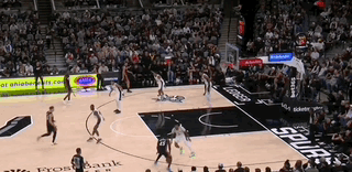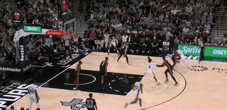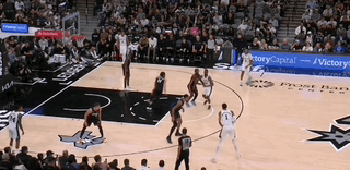 文班甚至不用叫掩护,单靠自己突破五号位防守人就能引来两人协防,极大简化了马刺的进攻战术