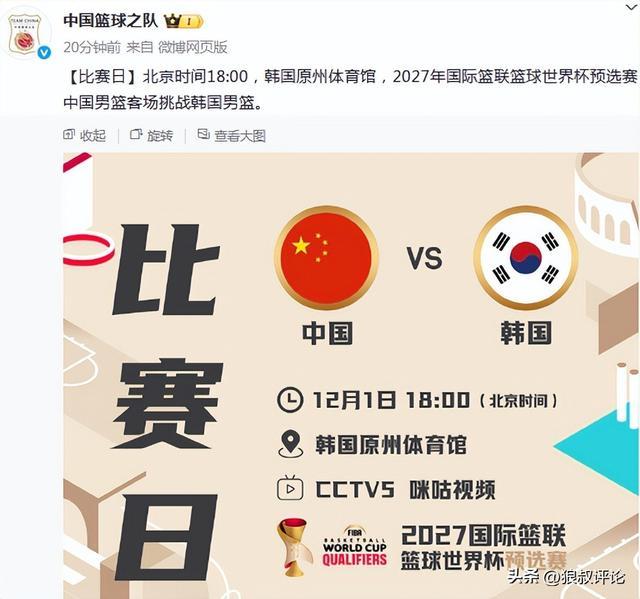 篮球记者贾磊发文点评:赵睿不会出战今晚对阵韩国的世预赛,期待我们的后卫线有人能够挺身而出!中国队加油!